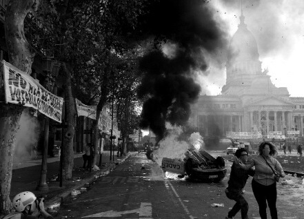 Algunas de las prácticas desplegadas que se relató que ocurrieron durante la detención y a continuación de ella no diferían tanto de las que, fuera de situaciones de movilización y protesta, hube registrado a lo largo de los años en barrios pobres y villas de emergencia del Área Metropolitana de Buenos Aires y que también se dieron en pueblos y ciudades de otras provincias del país. Detenciones arbitrarias y violentas, humillaciones, golpes, falta de asistencia médica, de alimentos y de agua, demoras y “paseos” por horas en patrulleros antes de ser llevadas a los lugares de detención.[37] Pero esta vez el contexto de razzia, la masividad y la diversidad de las víctimas ponían en evidencia el poder represivo hecho de prácticas violentas y abusivas; un poder represivo y unas prácticas ya no en ejercicio selectivo, circunscripto a lugares segregados y sobre una “clientela habitual”,[38] sino expandido en una ciega “democratización” y en el contexto de una masiva protesta y movilización que, con la incorporación del arsenal de “armas menos letales” y el despliegue de cuerpos especiales, estaban puestos al servicio de la represión política.[39]