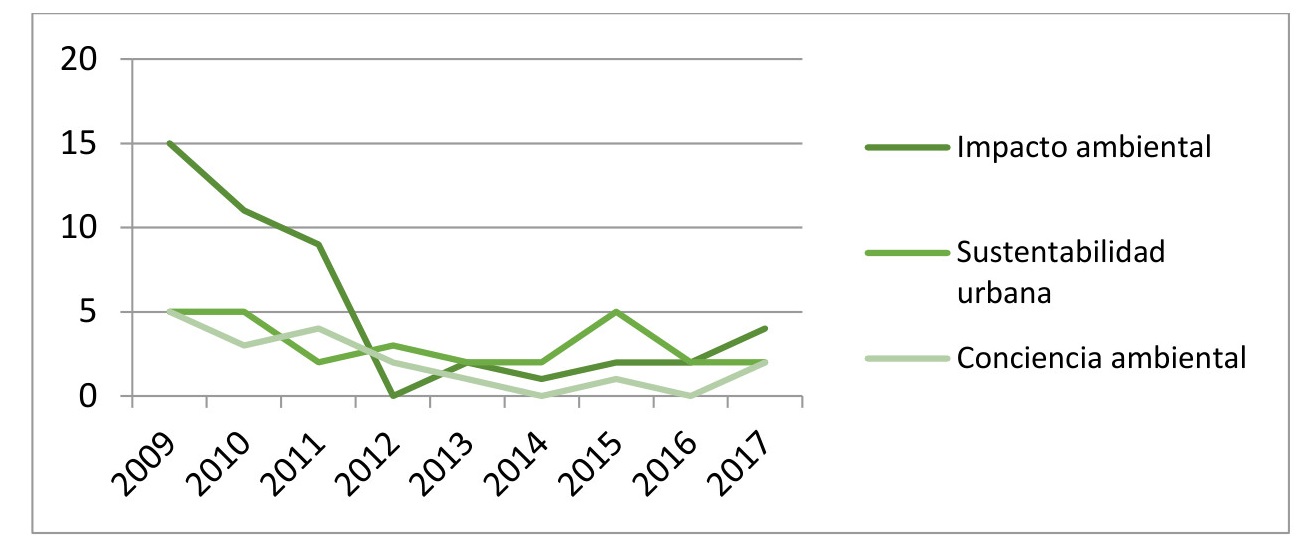 Gráfico 23. Comportamiento histórico de las categorías: “impacto ambiental”, “sustentabilidad urbana” y “conciencia ambiental”