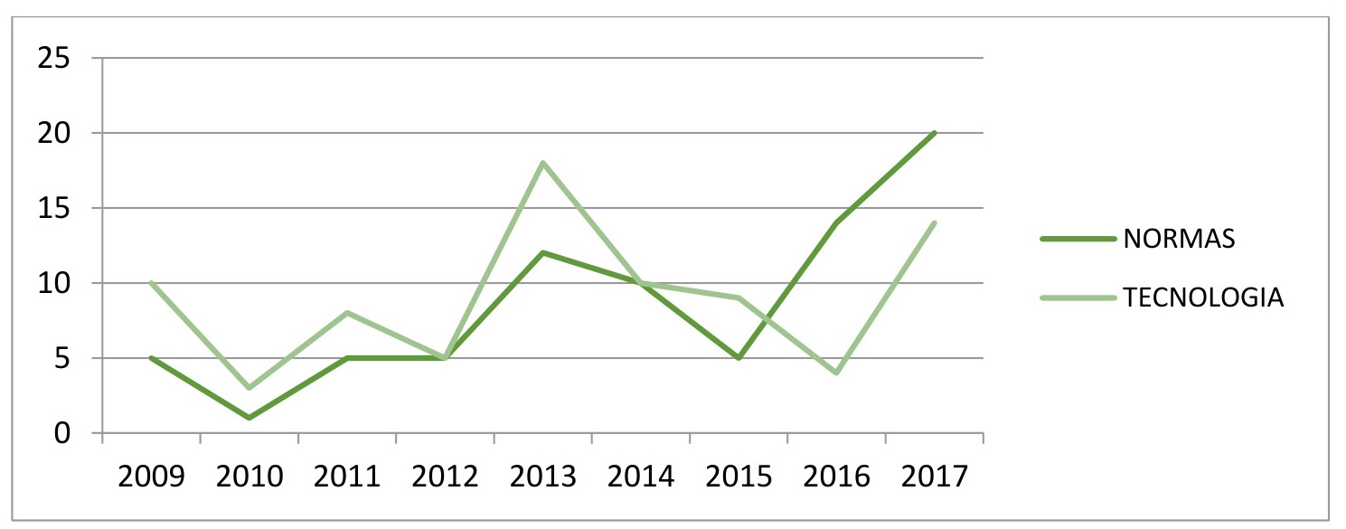Gráfico 26. Comportamiento histórico de las categorías: “normas” y “tecnología”