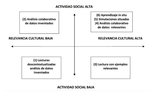 Cuadro 1. Enfoques instruccionales según dos dimensiones: relevancia cultural y actividad social