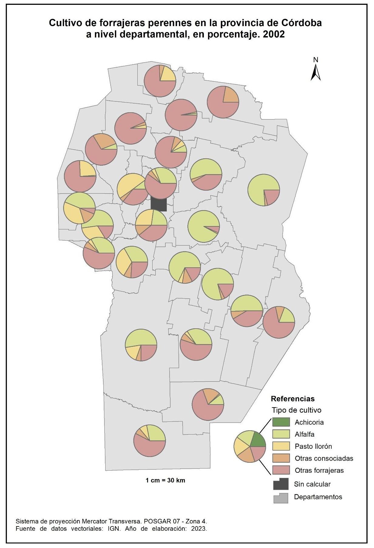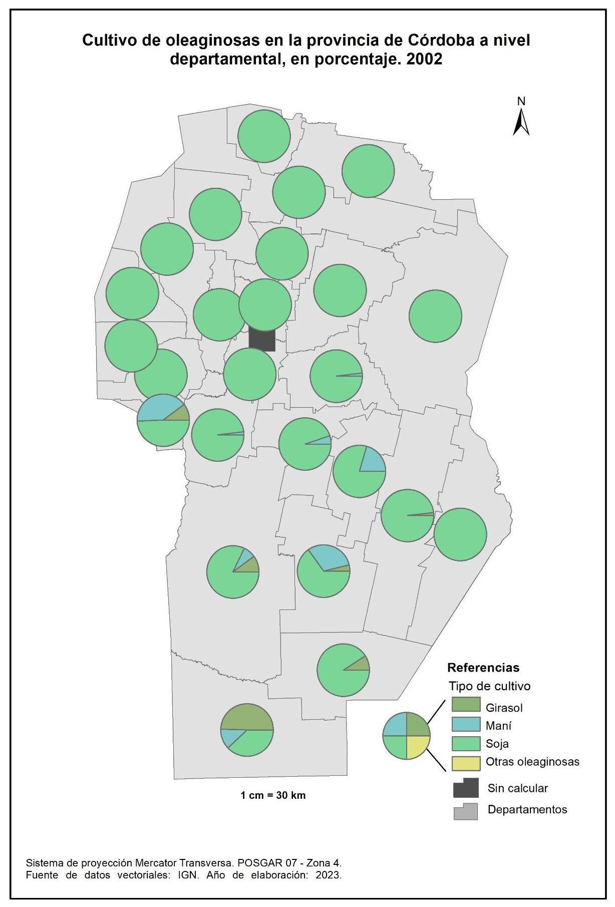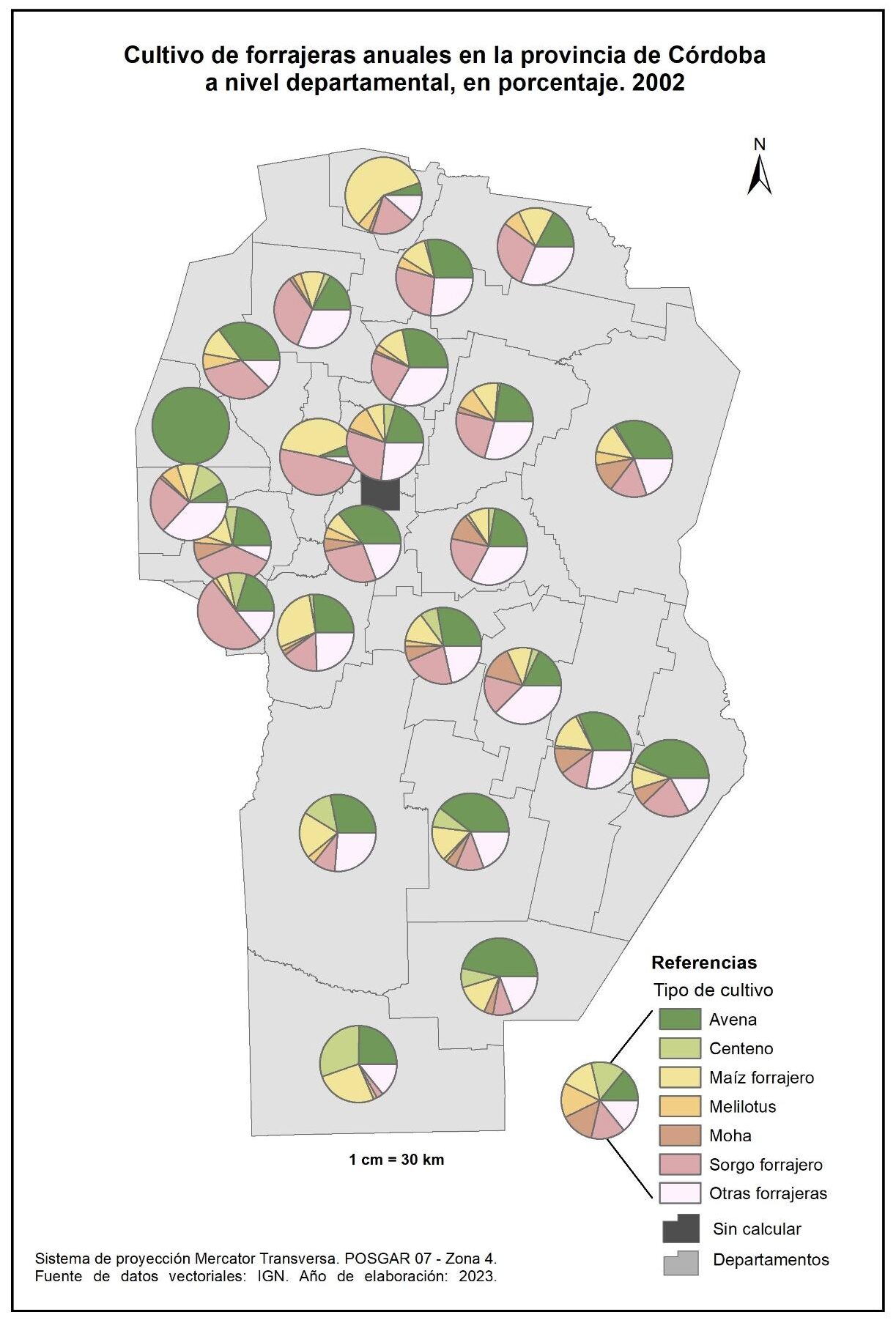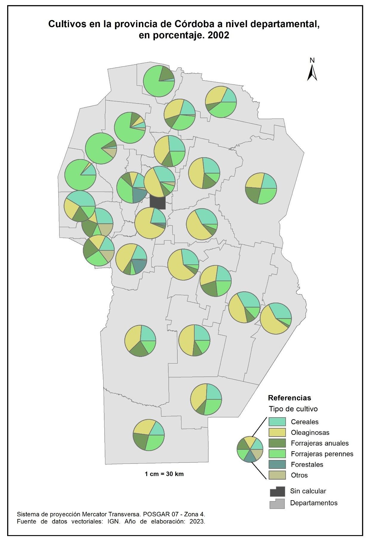 Figura 3.15. Cultivos en la provincia de Córdoba a nivel departamental. Año 2002.