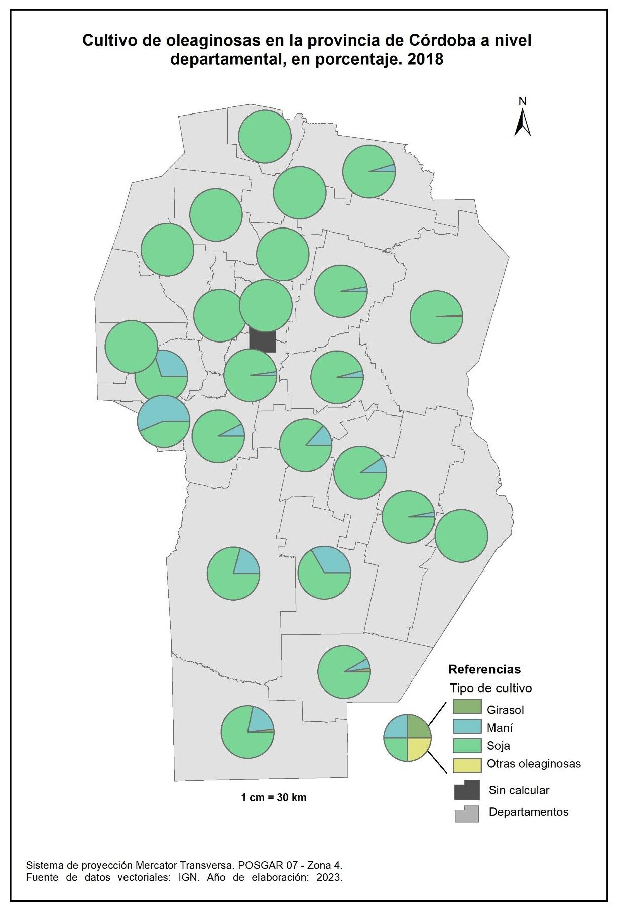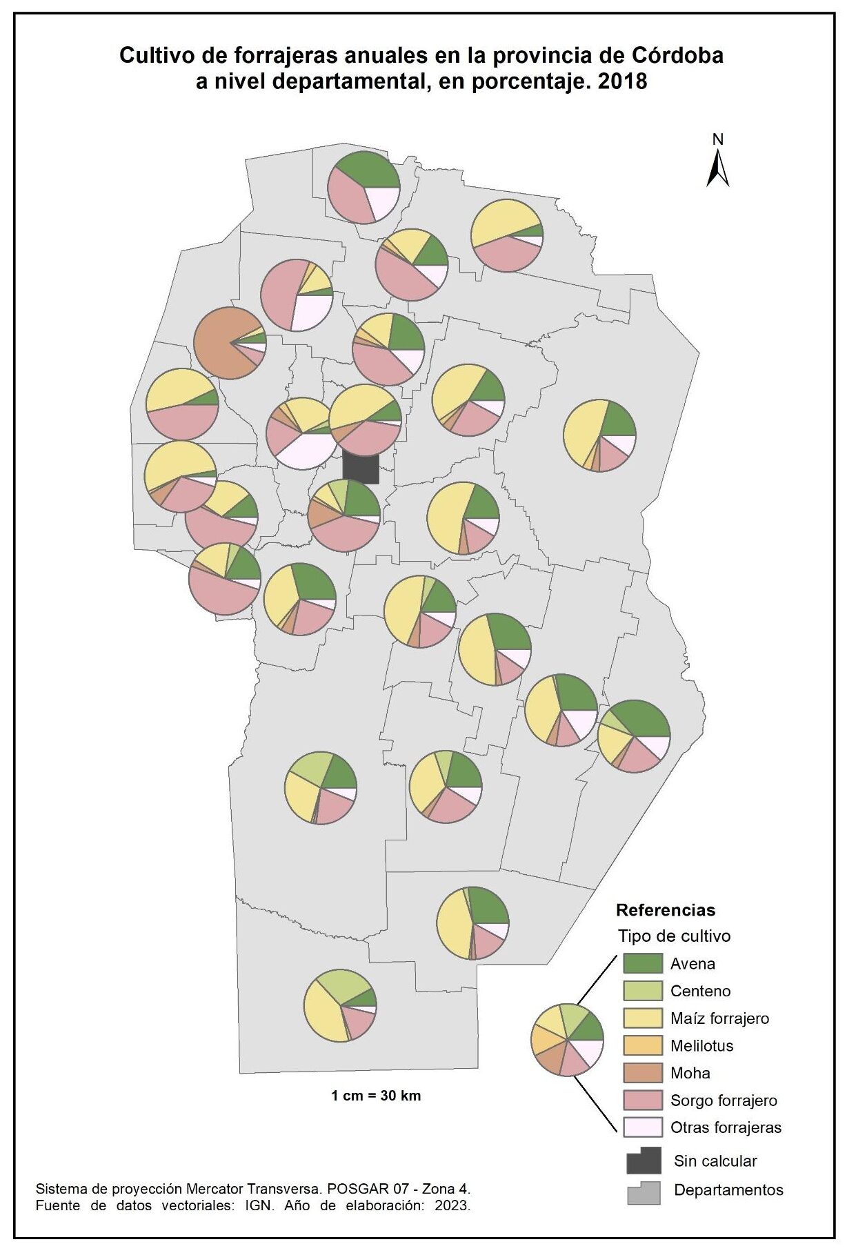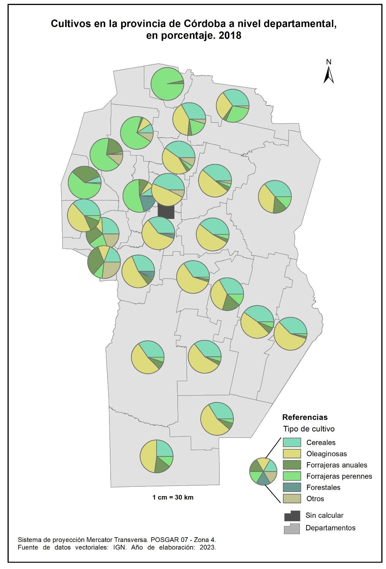 Figura 3.16. Cultivos en la provincia de Córdoba a nivel departamental. Año 2018.