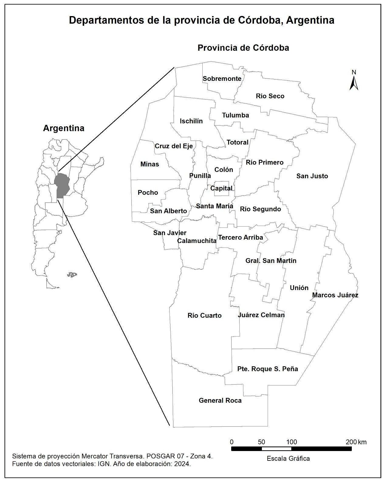 Figura 1. Departamentos de la provincia de Córdoba.