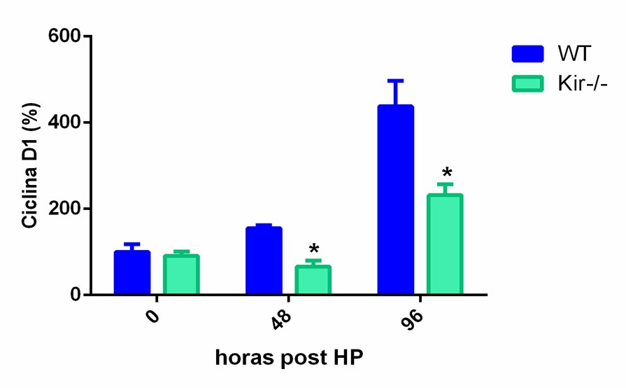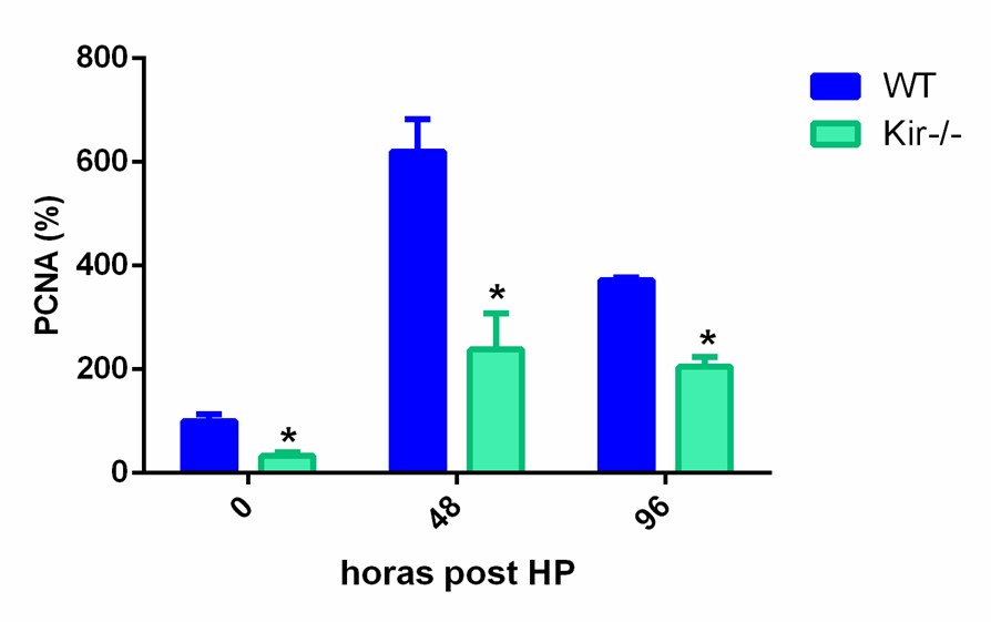La ausencia de Kir6.2 reduce el estado proliferativo de los hepatocitos durante la regeneración hepática posterior a una HP