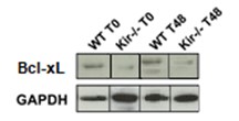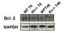 Se ha descripto que en la regeneración hepática post HP, al final de la síntesis de ADN se produce una pequeña ola de apoptosis de los hepatocitos como un mecanismo para corregir el disparo de una respuesta regenerativa excesiva (Sakamoto T, Liu Z, Murase N, Ezure T, Yokomuro S, Poli V, Demetris AJ, 1999). Se decidió estudiar el nivel de apoptosis en los grupos WT y Kir-/- a través de la detección de proteínas de la familia Bcl-2, una familia clave que participa en la muerte apoptótica. Las proteínas de esta familia son reguladores de los cambios estructurales en la membrana mitocondrial que conducen a la apoptosis y hay miembros de la familia, como Bax, con función proapoptótica, es decir favorecen la muerte celular programada, mientras que otros miembros como Bcl-2 y Bcl-xL ejercen acciones antiapoptóticas (Edlich J, 2018). En el presente trabajo, se determinaron por Western Blot los niveles proteicos de Bax, Bcl-2 y Bcl-xL en lisados totales de hígado de ratones WT y Kir-/-, a las 0, 48 y 96 h post HP.
