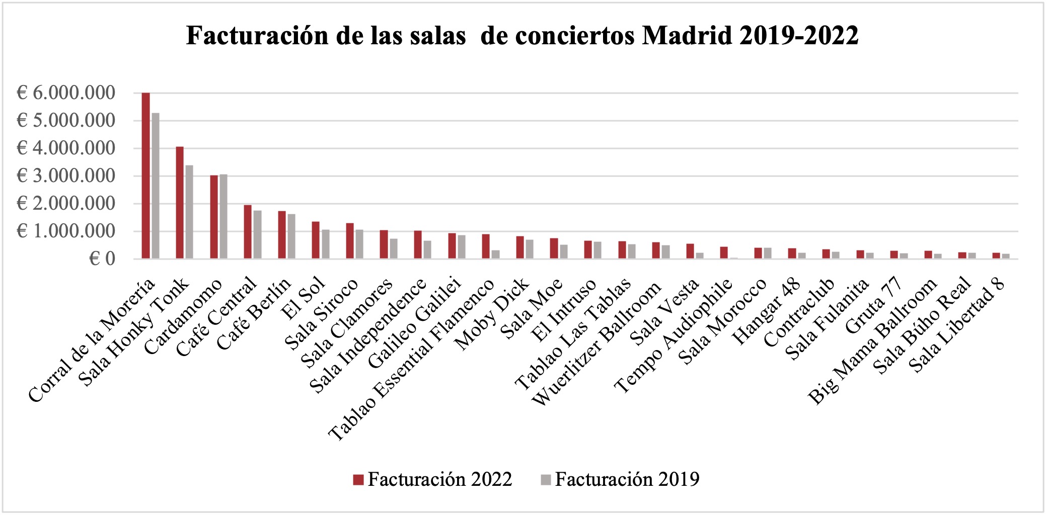 Gráfico 4. Comparativa de facturación de salas de concierto de Madrid de 2022 vs. 2019