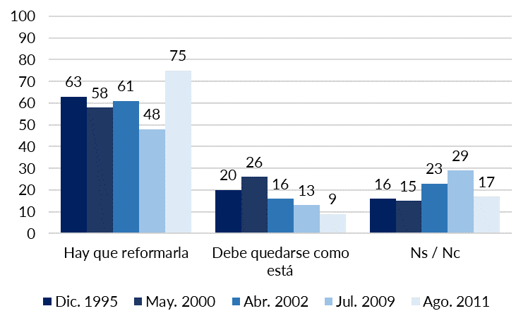 Figura 2. Opinión respecto de la Reforma a la Constitución, 1995-2011