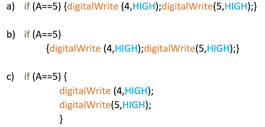 - Sintaxis: en un sketch Arduino da lo mismo si se escribe en mayúsculas que en minúsculas: (verdadero/falso).