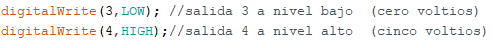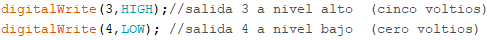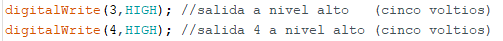 Cuidado: && es para unir condiciones con AND. Si se quiere realizar una acción y otra, por ejemplo, poner a HIGH los pines 3 y 4, lo que se hace es una secuencia, primero se pone a HIGH el pin 3 y luego el pin 4. No se confunda: no hay que poner && (y=and) entre cada digitalWrite.