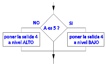 2. Si la entrada 2 está a nivel bajo, entonces poner la salida 5 a nivel alto, sino poner la salida 5 a nivel bajo.