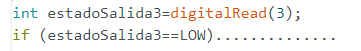 If (digitalRead(3)==LOW)…… que significa: si la salida 3 está a nivel bajo, entonces hago……