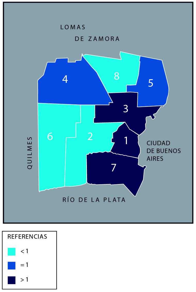 - El partido de Lanús fue creado en 1944 bajo la denominación “Cuatro de Junio”. Su territorio correspondía hasta entonces al partido de Avellaneda. Por esa razón, hemos optado por tratar sus datos conjuntamente en función de nuestra intención comparativa. A tal fin, elegimos la denominación “conglomerado urbano Avellaneda/Lanús” propuesta por Matías Bisso (2015, p. 325).↵
