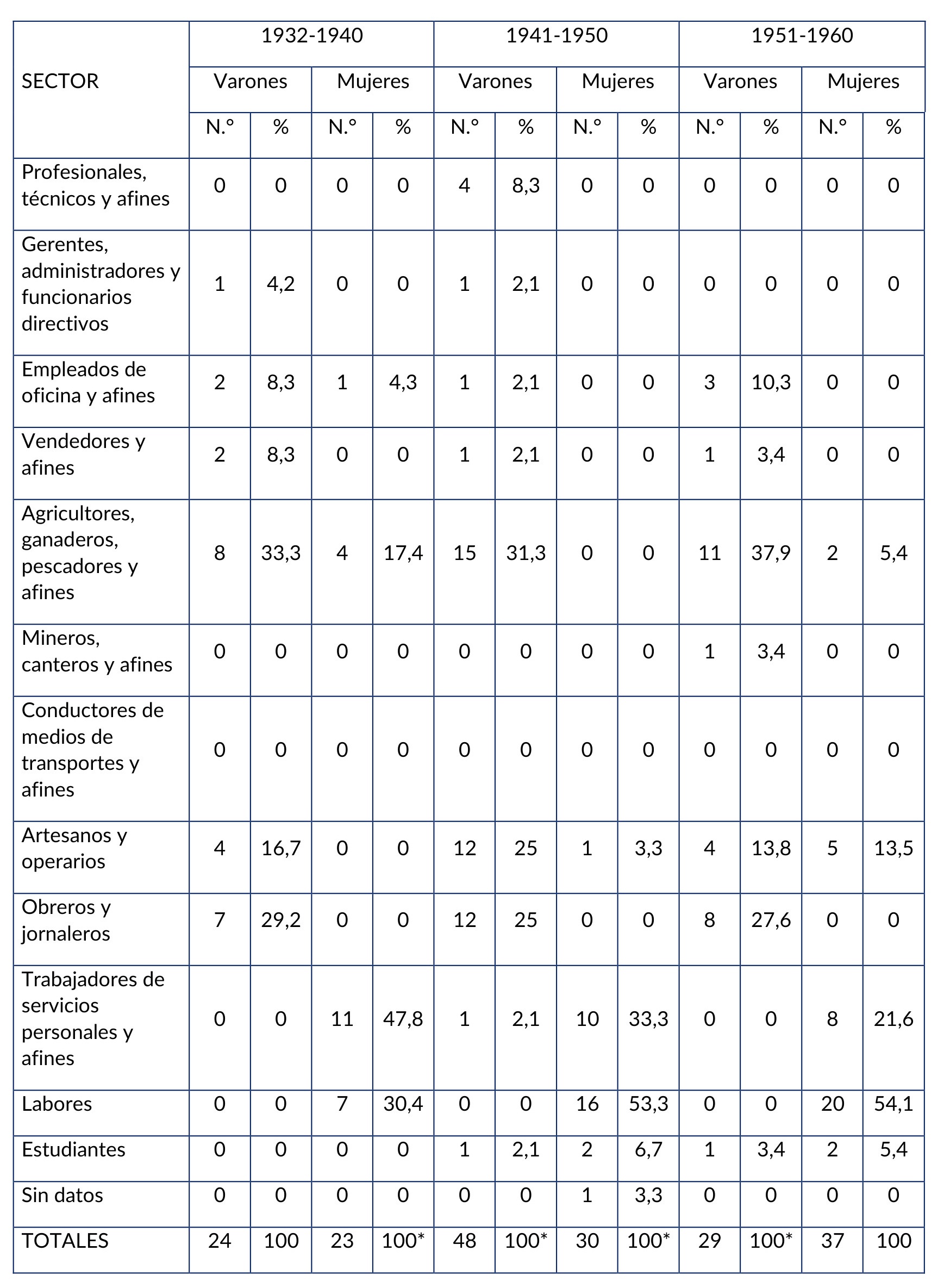 Tabla 11. Perfil ocupacional de los inmigrantes arribados a Valentín Alsina (1932-1960)