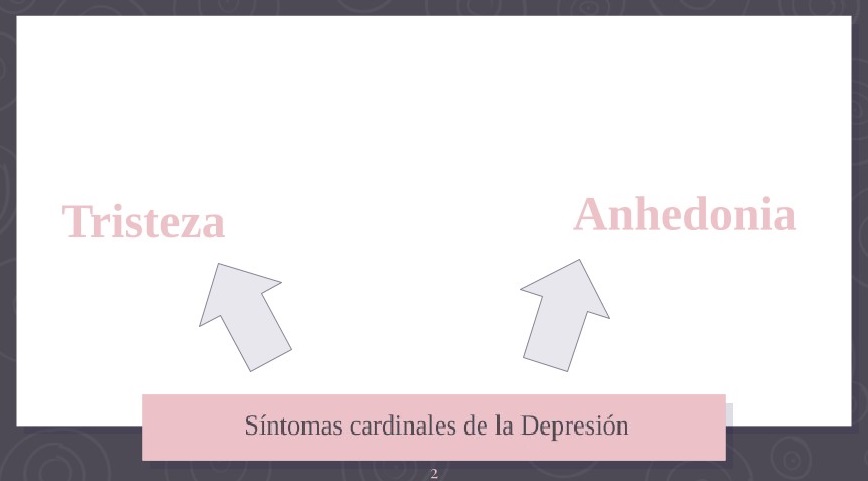 Si bien hay una notable heterogeneidad en la presentación del trastorno depresivo mayor, la anhedonia es uno de los síntomas cardinales junto con la tristeza tanto para DSM 5-TR como para CIE 11. Estos, desde Bleuler, se consideran síntomas fundamentales de depresión.