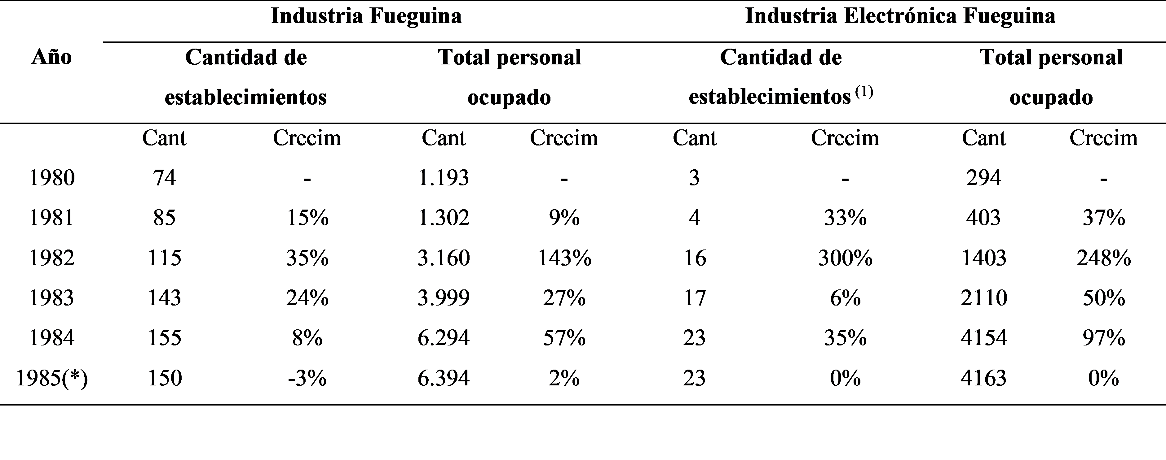 Cuadro 4. Número de establecimientos y personal ocupado, según rama de actividad. Territorio Nacional de Tierra del Fuego. Años 1980 a 1985