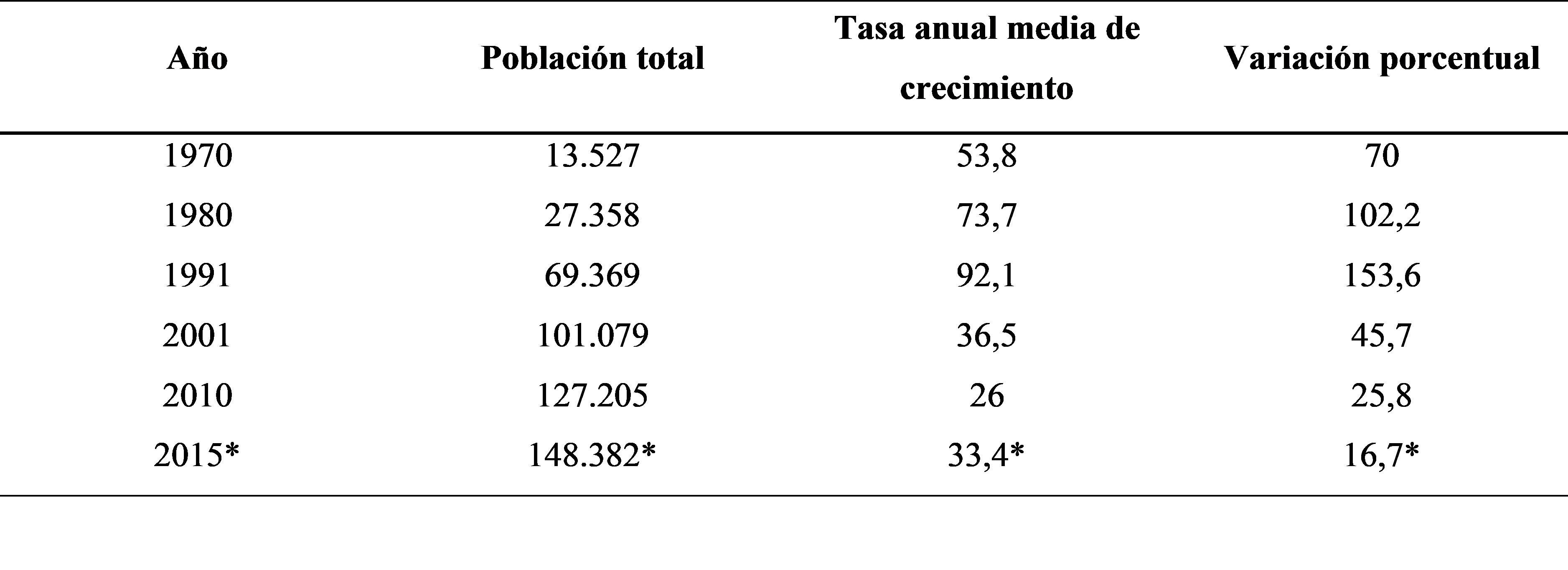 Cuadro 5. Población, Tasa anual media de crecimiento y variación porcentual. Tierra del Fuego. Censos Nacionales de 1970 a 2015