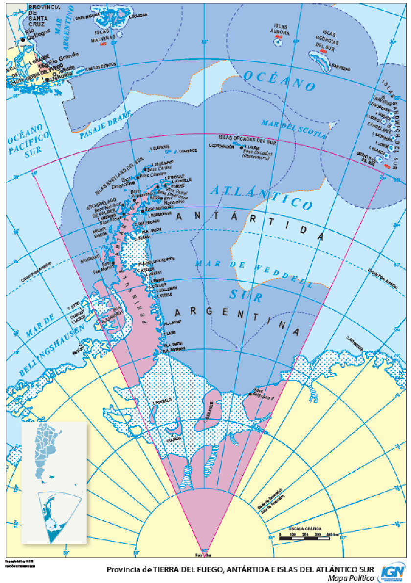 Mapa 7. Provincia de Tierra del Fuego, Antártida Argentina e Islas del Atlántico Sur en el marco de la Ley 23.775