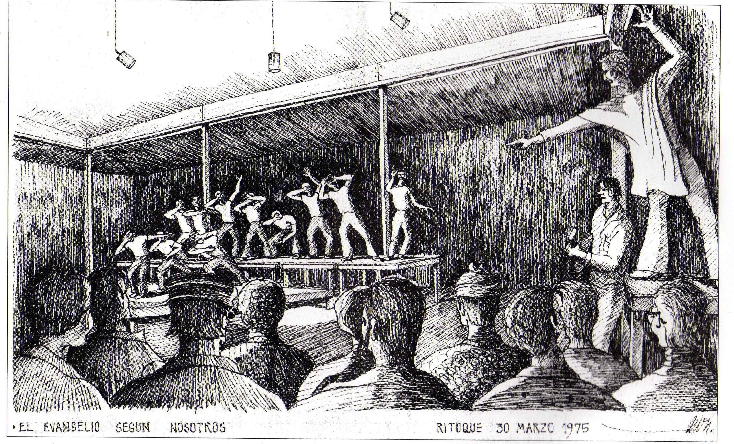 Imagen 10. Teatro. Dibujo de Miguel Lawner. Ritoque, Chile, 1975.