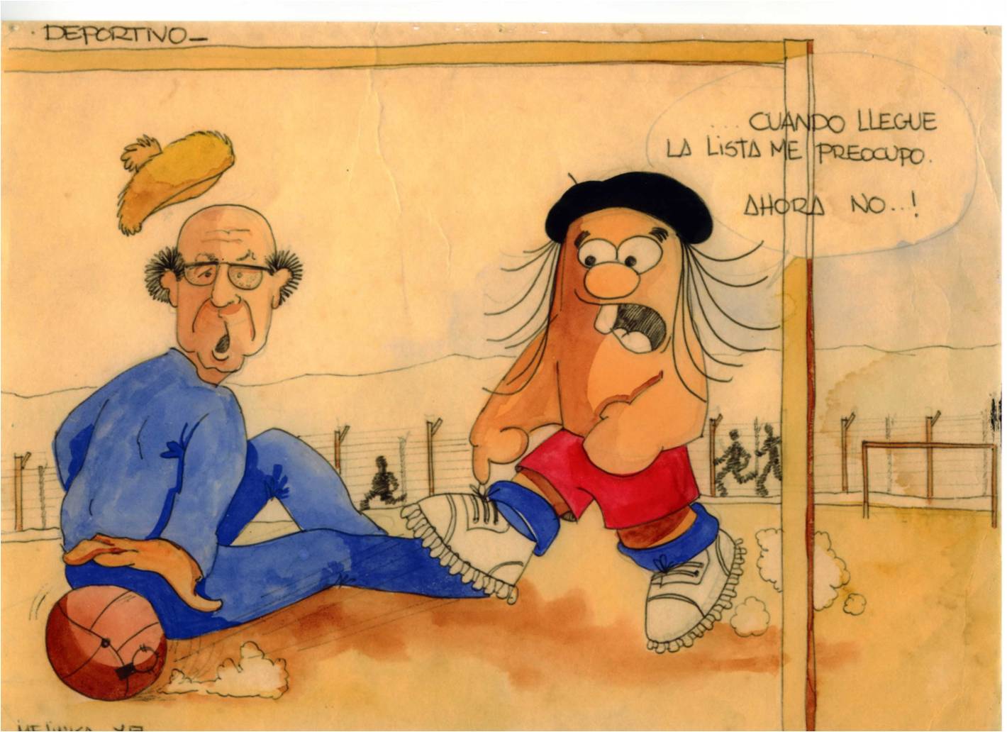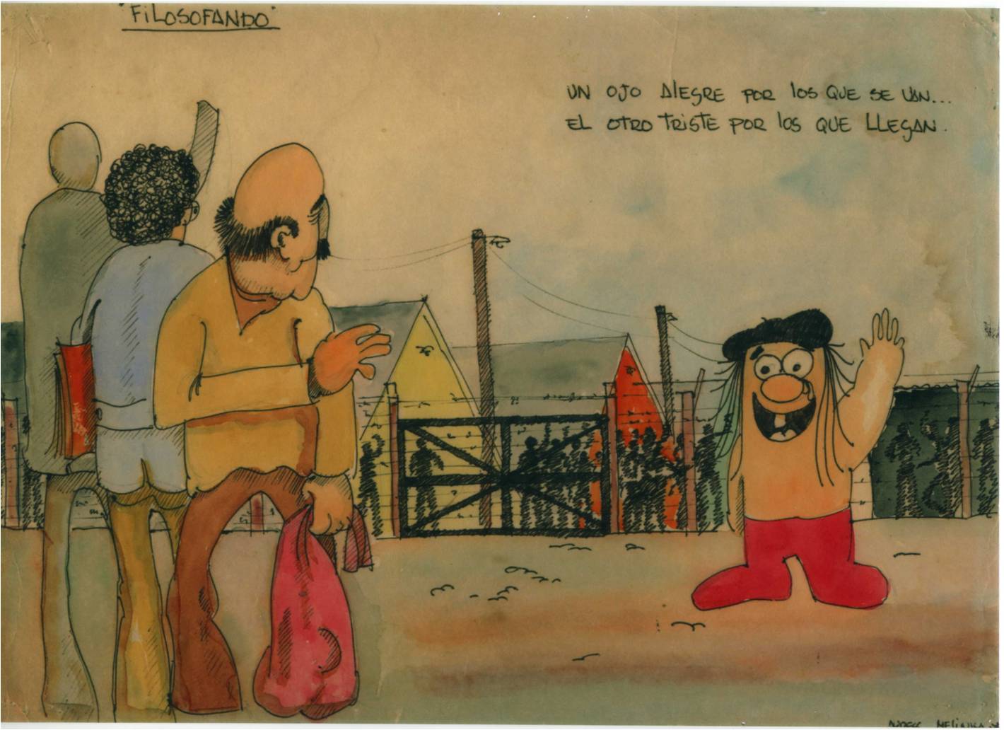 Sumemos a la experiencia uruguaya, la presencia del humor gráfico en otra situación extrema que conocemos gracias a Pilar Calveiro, quien relata en su libro sobre los campos de concentración en Argentina que en la Escuela de Mecánica (la ESMA) los presos de capucha llegaron a fabricar pequeños libritos con chistes recortados de periódicos, como regalo de Navidad en diciembre de 1977. “El trabajo, el juego, y con ellos la risa fueron formas de defensa del sujeto amenazado. En efecto –agrega Calveiro (2004)–, la risa aparece en muchos de los relatos y confirma la persistencia, la tozudez de lo humano para protegerse y subsistir” (p. 112).