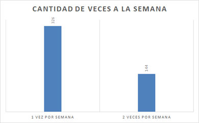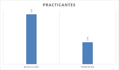 Dentro de esos 470 practicantes encuestades, un 69 % son hombres (326) y un 31 % son mujeres (144). Estos mismos resultados se dieron cuando se les preguntó cuántas veces por semana tenían educación física, a lo que un 69 % respondió que tenían una vez por semana (326) y el otro 31 %, dos veces por semana (144), haciendo la salvedad de que en secundaria normalmente tienen dos módulos (equivalen a dos horas reloj) semanales de educación física; en este caso, les estudiantes que tienen una vez por semana tienen dos horas en el mismo día, y les estudiantes que tienen dos veces por semana tienen una hora por día.