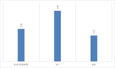 La siguiente pregunta que se les hizo fue si les gustaría tener más horas de educación física o si creían que era suficiente; esto derivó en tres respuestas: un 30 % (140) dijo que era suficiente la cantidad de horas que tienen de educación física, un 24 % (112) expresó que no quieren tener más horas, y un 46 % (218) de les practicantes encuestades demostró su “gusto” por la materia diciendo que sí les interesaría tener más horas durante la semana.