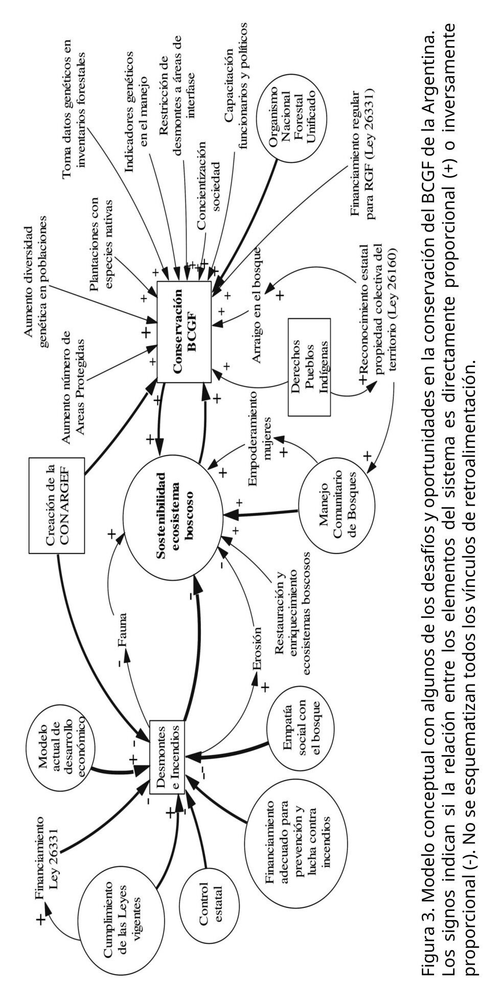 - En la Figura 2 se presenta el modelo conceptual con las variables más sensibles de todo el sistema de conservación de los RGF en la Argentina, y en la Figura 3, lo propio con algunos desafíos y oportunidades en la conservación del BCGF de la Argentina.