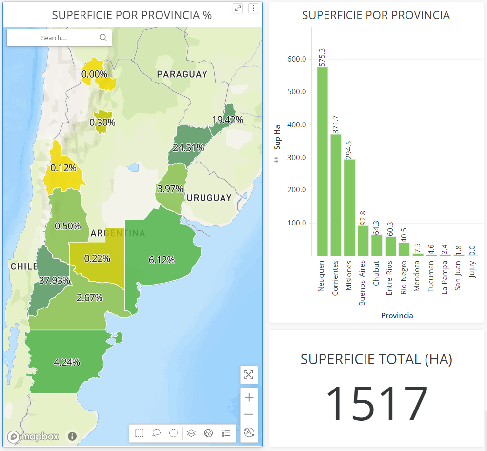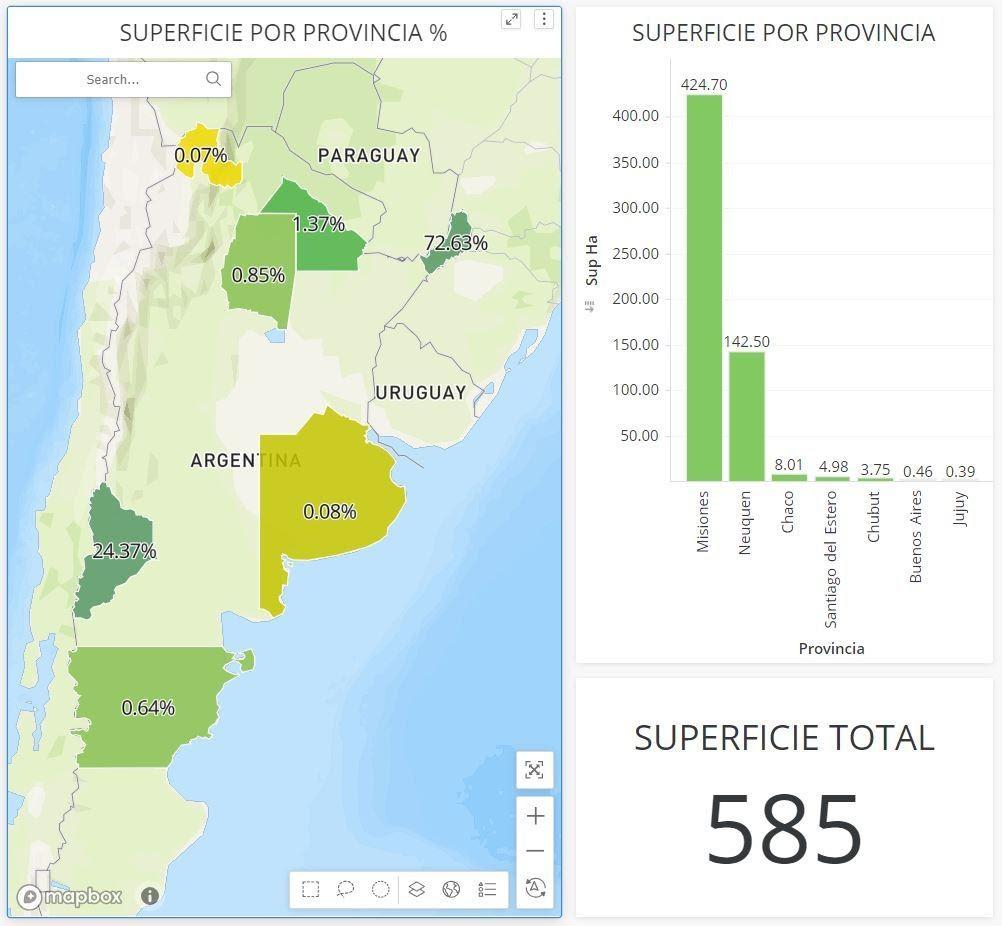 Figura 2. Superficie y provincias con materiales básicos de especies nativas registradas en el INASE.