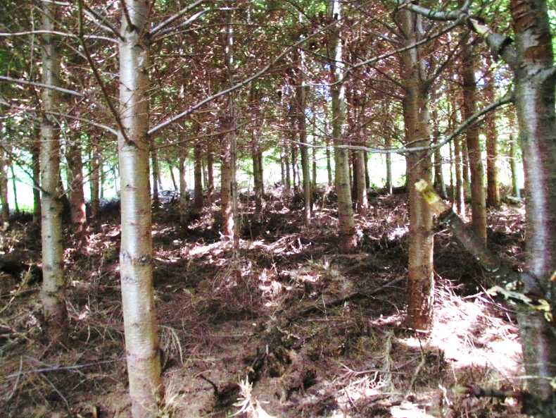 Figura 13. Ensayo de nueve procedencias de Pseudotsuga menziesii var. menziesii (costera), 20 cm DAP, y 3 de var. glauca (interior), 5 cm de DAP, de 16 años de edad en Mallín Ahogado, Patagonia (foto: L. Gallo).
