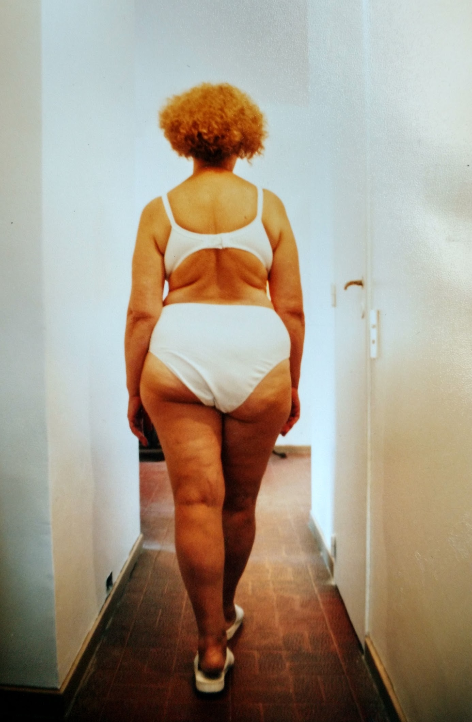 En 2002 emprendí -lo que a la luz de los años considero- mi primera declaración de principios contra la representación del cuerpo femenino en la publicidad. “Alicia y su mundo de fantasías”, fue uno los últimos trabajos que realicé para la escuela de fotografía. Cuando conocía Alicia, una mujer cercana a los 80 años, vivía en su departamento de tres ambientes cerca de la cancha de River Plate en la capital. La casa estaba decorada con todos los objetos que no había podido vender cuando tenía su negocio de antigüedades. Ella tenía un novio “bañero” en la costa de la provincia con quién se veían a menudo, muchas de las fotos que hicimos eran un regalo para él. Con Alicia quería mostrar una mujer adulta en su intimidad, empoderada, sin tabúes respecto a su cuerpo. Le propuse hacer un desnudo y acordamos hacer las fotos en ropa interior. El objetivo era mostrar que se podía mostrar un cuerpo femenino, cuya imagen no necesitaba de manipulación posterior para lucir bella porque a sus ojos –y a los míos- ya lo era.