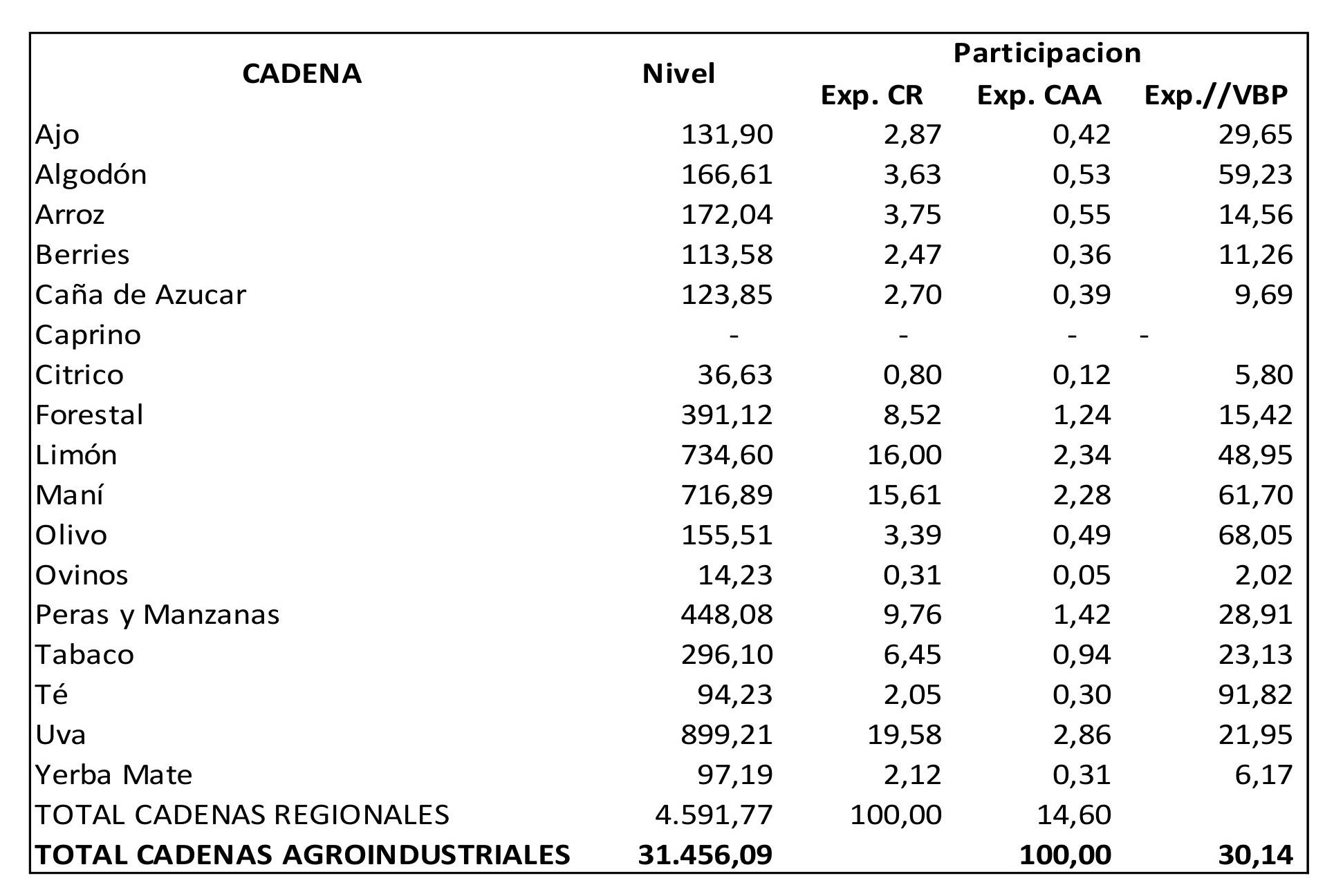 Total Cadenas Agroindustriales | 1.257.542 | 2.143.849 | ||||