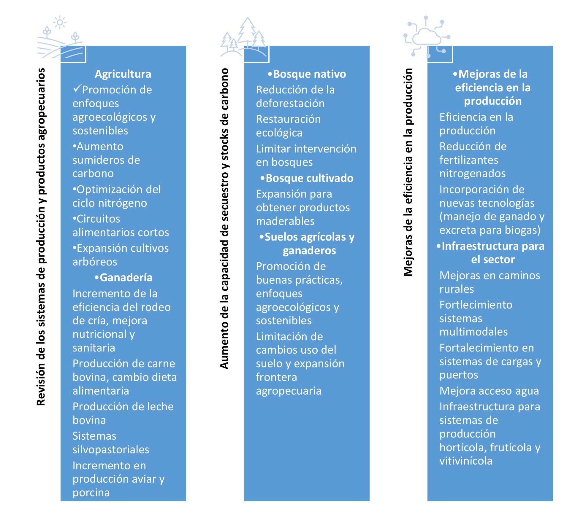 Si bien estas medidas sectoriales alimentan la trayectoria de la carbono-neutralidad y significan un cambio en los procesos productivos de alimentos, se requieren, sin embargo, acciones aún más disruptivas pues las estimaciones disponibles de potenciales de mitigación indican que el esfuerzo no sería suficiente.