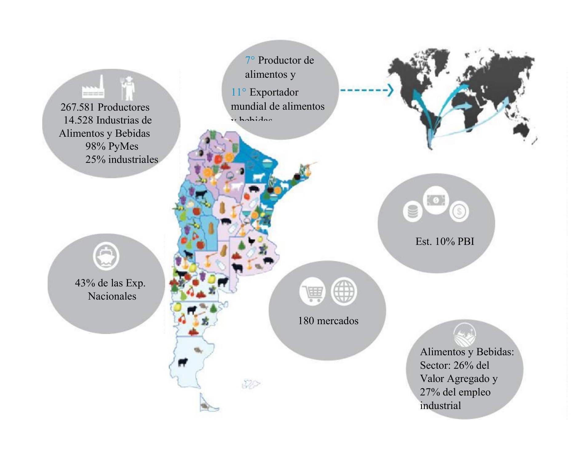 El sistema alimentario en general y el de Argentina en particular involucran un conjunto de actividades y de actores que van desde la producción primaria, el transporte, las logísticas, y los procesos de industrialización, de comercialización y venta tanto a nivel local como internacional y que vincula a los países a través del intercambio comercial y la inversión.