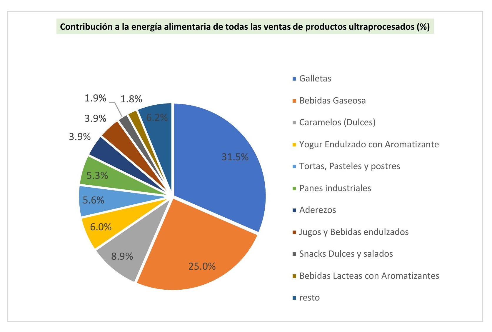 Gráfico 4. Contribución a la energía alimentaria de todas las ventas de productos ultraprocesados (%)