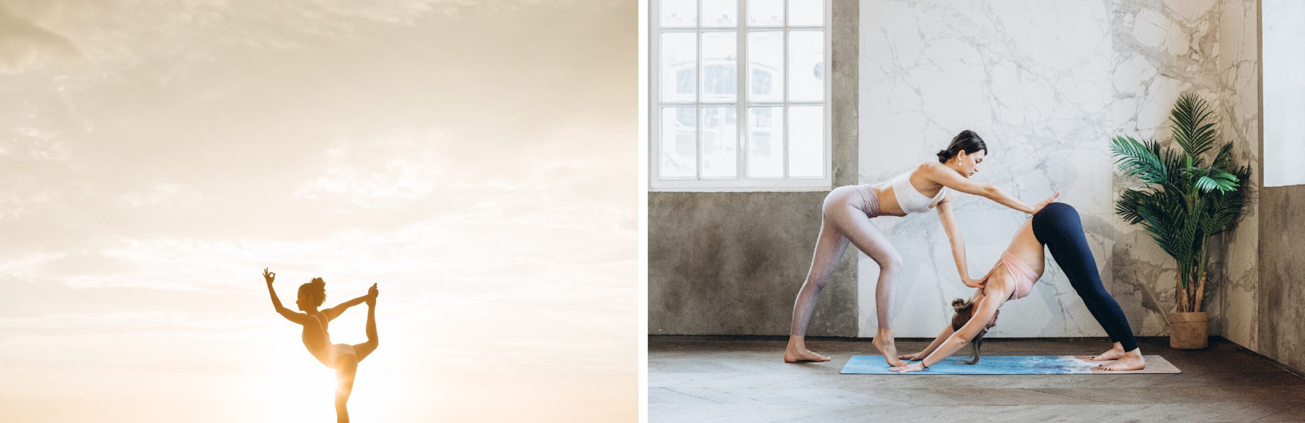 El yoga forma parte de las prácticas del hinduismo,[2] el budismo[3] y el jainismo[4] antes circunscriptos a Oriente. Si bien gurús procedentes de la India introdujeron el yoga y la meditación trascendental en Occidente desde finales del siglo XIX, estos se popularizan durante las décadas de 1960 y 1970 como parte de la cultura beatnik, apuntalada a partir del viaje espiritual de The Beatles a la ciudad india de Rishikesh.