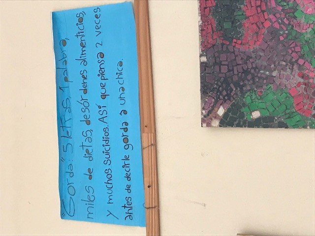 Temáticas y problemáticas sociales diversas ocupan las paredes de la escuela a través de las intervenciones de los estudiantes. Discriminación (imagen 6), memoria reciente (imagen 9), violencia de género (imagen 8), participación política (imagen 7), respeto a la diversidad sexual y de género (imagen 10). Un registro fotográfico que muestra no solo la variedad y complejidad de asuntos que interpelan a los estudiantes, sino también sus posicionamientos como sujetos políticos que enuncian su voz en la escuela, que tienen algo para decir al respecto; y en ese lugar pueden hacerlo, porque es un espacio de escucha y de confianza, donde se construye ciudadanía de manera democrática.