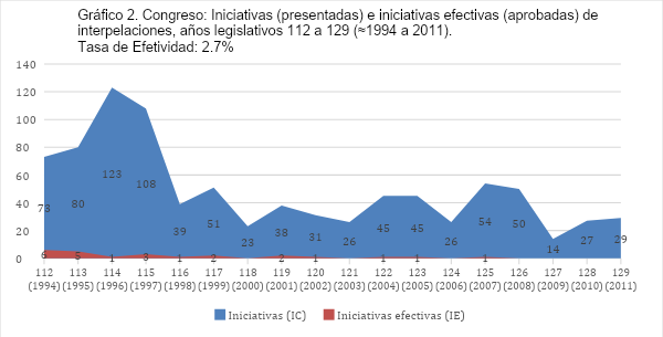 Comentario aparte merece la pregunta acerca de por qué los/as representantes parlamentarios/as presentan tantas iniciativas de control (interpelaciones) si las expectativas de aprobación son prácticamente nulas. Probablemente, ello se vincule con la presencia de otros factores o incentivos concurrentes. Primero, presentar un proyecto de control es de muy bajo costo. Segundo, la incidencia de propósitos distintos del orientado a controlar estrictamente o mitigar asimetrías de información mediante la respuesta o comparecencia del/la funcionario/a, tales como escándalos, remociones de funcionarios, etc. De acuerdo con el diseño institucional, la presentación de un pedido de control sobre el Ejecutivo tiene como objetivo controlar; proyectos de control no aprobados deben considerarse inefectivos puesto que no contribuyen a controlar ni mitigar asimetrías informacionales, aunque puedan ser efectivos en otros sentidos para los/as presentadores/as de tales proyectos.