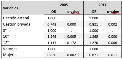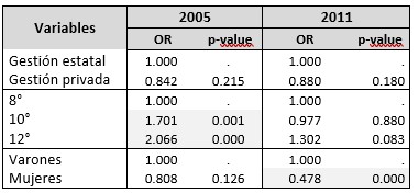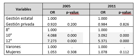 Fuente: Elaboración propia. Base Estudio Nacional en Estudiantes de Enseñanza Media. Argentina 2005 y 2011