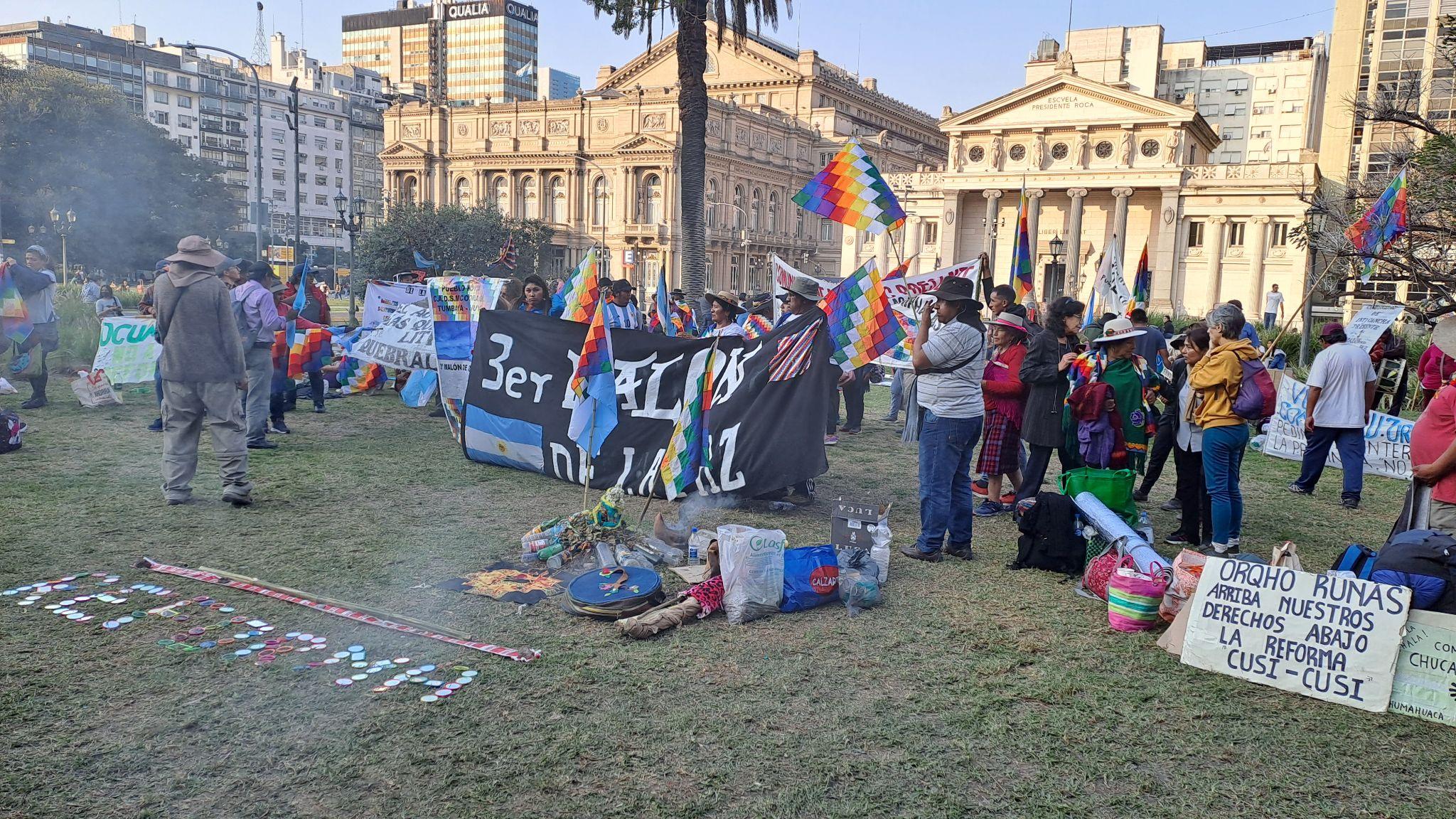Imagen 1. Manifestación de comunidades indígenas en contra de la reforma constitucional frente al Palacio de Justicia en Ciudad de Buenos Aires. Fuente: fotografía tomada por los autores.