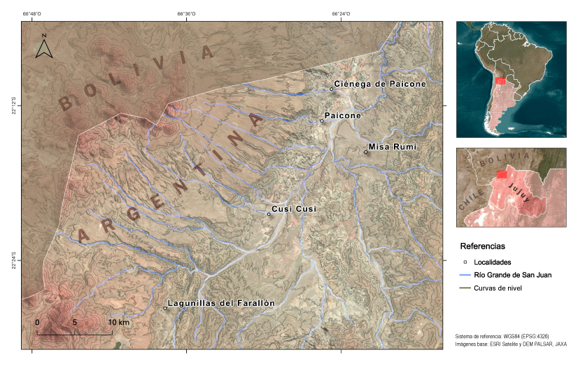 El pueblo de Cusi Cusi se ubica en la puna seca argentina a 3.800 m.s.n.m., en la provincia de Jujuy (imagen 2), muy cerca de la frontera con Bolivia y dentro de lo que se conoce, en la actualidad, como Triángulo del Litio[3].