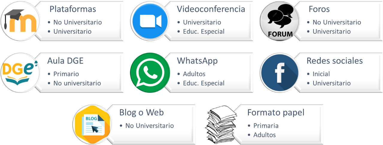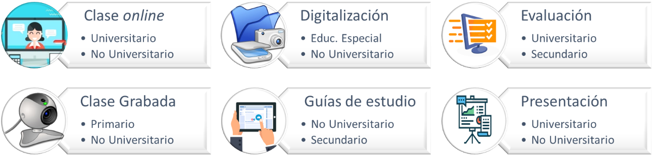 - Clases grabadas: predominan en niveles primarios y superiores no universitarios.