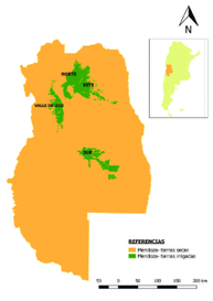 La organización del territorio de la provincia de Mendoza es muy particular y está basada en el concepto de oasis y secano. Los oasis son los espacios de territorio donde se utiliza el agua para diferentes usos: humano, agricultura, industrias, entre otros. En estos oasis se concentra casi la totalidad de la población de la provincia (1.400.000 habitantes), en un porcentaje de territorio que representa más o menos entre el 4-4,5%. El resto del territorio provincial constituye el secano, también llamado tierras secas, donde se pueden encontrar zonas con una riqueza de bosques nativos como ecosistema natural, que ocupan aproximadamente 2.000.000 ha; algunas son áreas protegidas, áreas naturales, siempre en la ecorregión denominada monte.