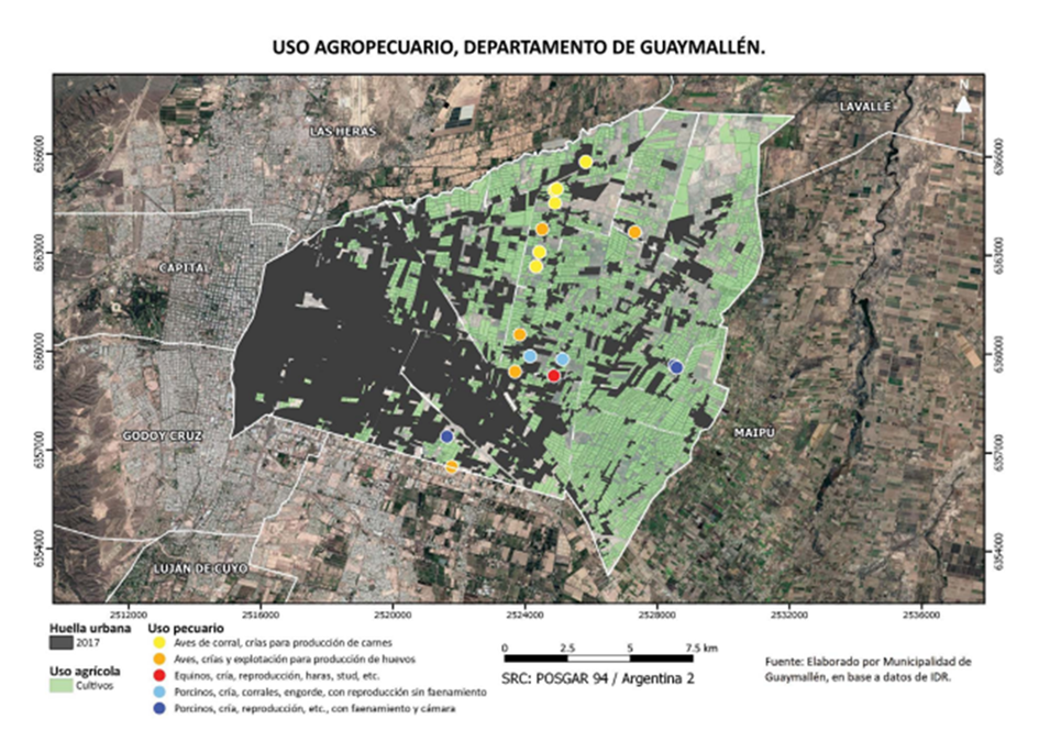 Figura 4. Usos agropecuarios del suelo – Departamento de Guaymallén. Fuente: Municipalidad de Guaymallén (2019).