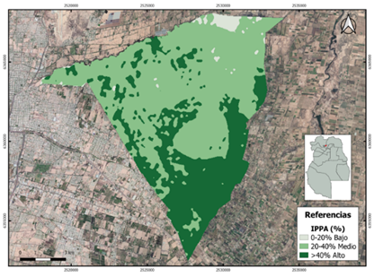 Se generó el Índice de Producción Potencial de Alimentos (IPPA) como un indicador clave en donde se conjugan las variables antes mencionadas a través de una fórmula que permite zonificar el área de interés. Por ejemplo, la zona sur del departamento de Guaymallén (IIPA mayor de 40%) hoy es una reserva agrícola que no puede utilizarse para cualquier actividad y no se puede avanzar sobre ella con ningún tipo de negocio inmobiliario.