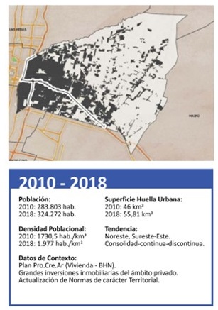 Existen hitos que han contribuido a esta evolución, como lo fue el gran terremoto que azotó la provincia en 1985, a partir del cual se pusieron en funcionamiento los planes de vivienda social por el IPV (Instituto Provincial de la Vivienda) y por el Banco Hipotecario Nacional. Se tomaron decisiones de avanzar en los terrenos productivos, que en ese momento no tenían costos tan altos, sin haber evaluado lo que significaba generar infraestructura y servicios de altísimo costo y con muchísimos problemas, lo que provocó un conflicto importante entre los habitantes propios del lugar y las actividades de este nuevo urbanismo. Ya entre 2010 y 2018 se siguió apostando a estos terrenos, a pesar de sus costos en crecimiento y de otras problemáticas que se agudizan (usos del agua, uso de agroquímicos cercanos a las zonas residenciales, movilidad, etc.), pero ya no con una mirada social sino de grandes espacios, grandes inversiones inmobiliarias de ámbito privado que se van metiendo y alterando esta área, esta fase interurbana con un formato de mosaico difuso y disperso a medida que avanza.