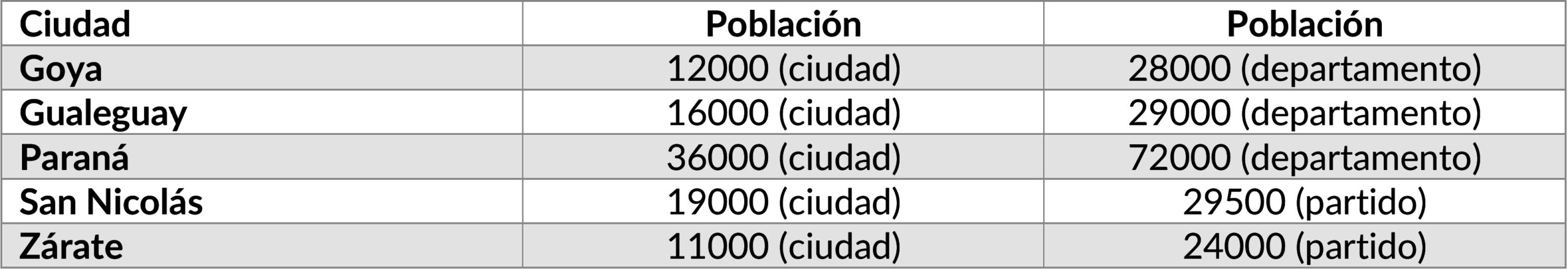 Cuadro 1: población, ciudades del litoral (año 1914)