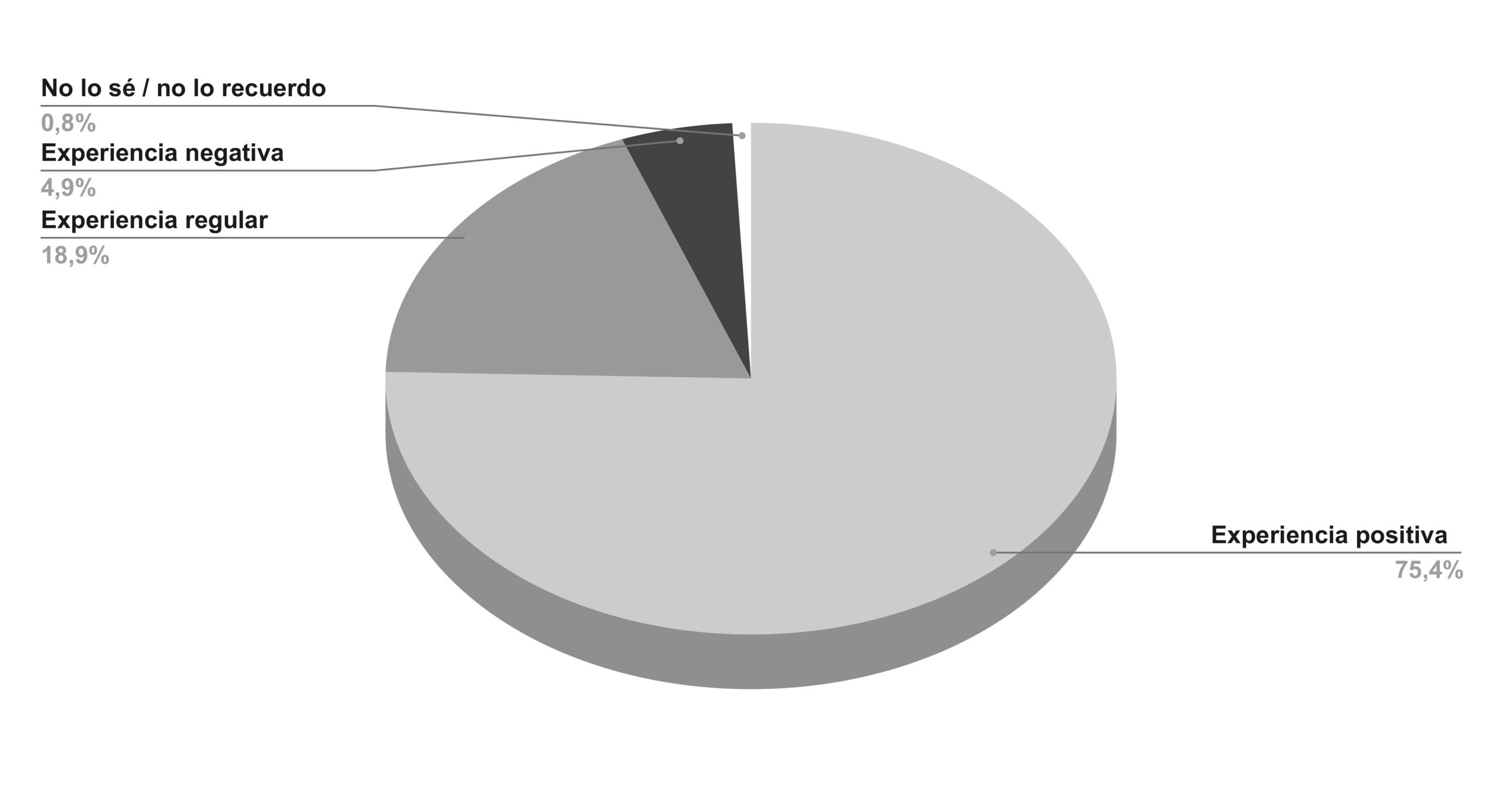 En términos generales, la evaluación sobre aquella etapa arrojó resultados bastante favorables en las 122 respuestas a esa primera pregunta: un 81,1 % consideró que esta etapa constituyó una experiencia positiva, mientras que un 15,6 % la consideró regular. Solo 2 personas la describieron como negativa, lo que equivale al 1,6 %.