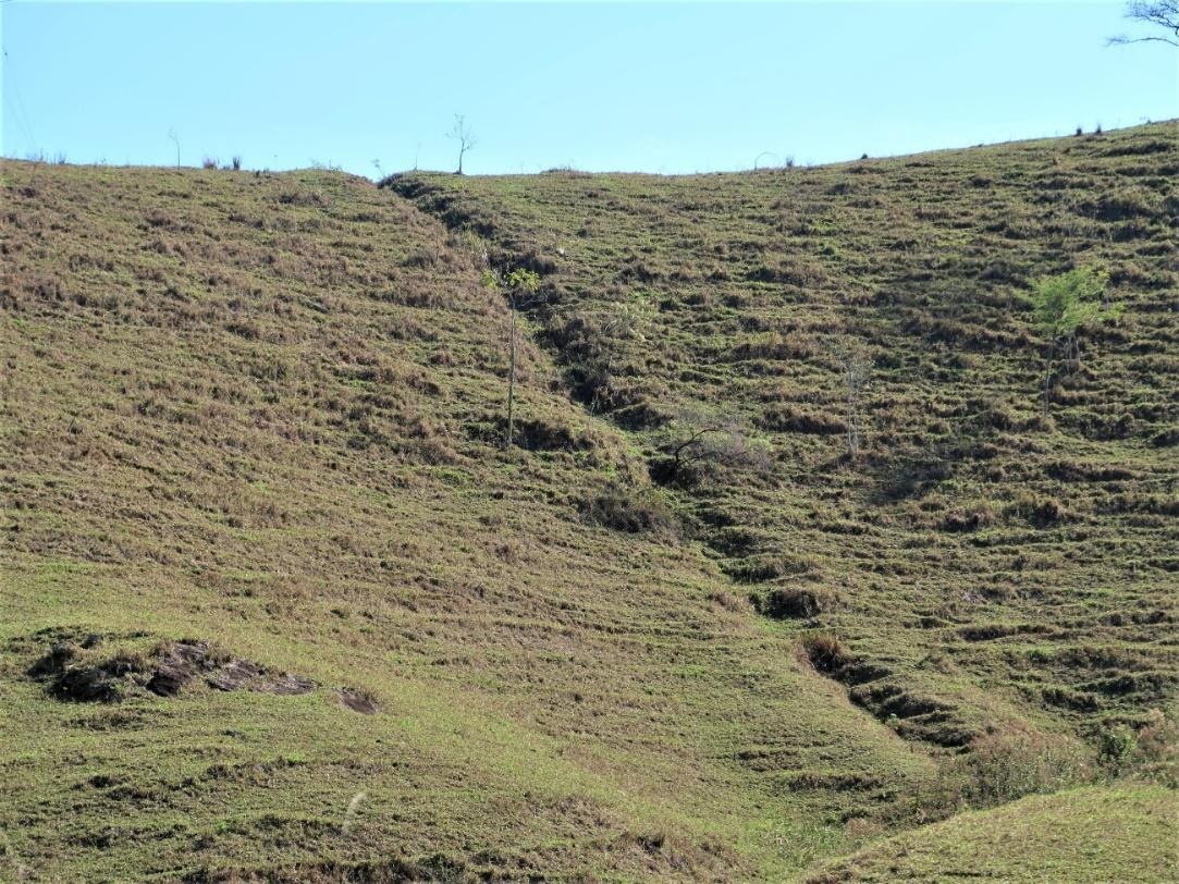 Figura 6. Vestígio de antigo caminho de carros de bois em uma encosta de uma colina em São José do Barreiro (SP)