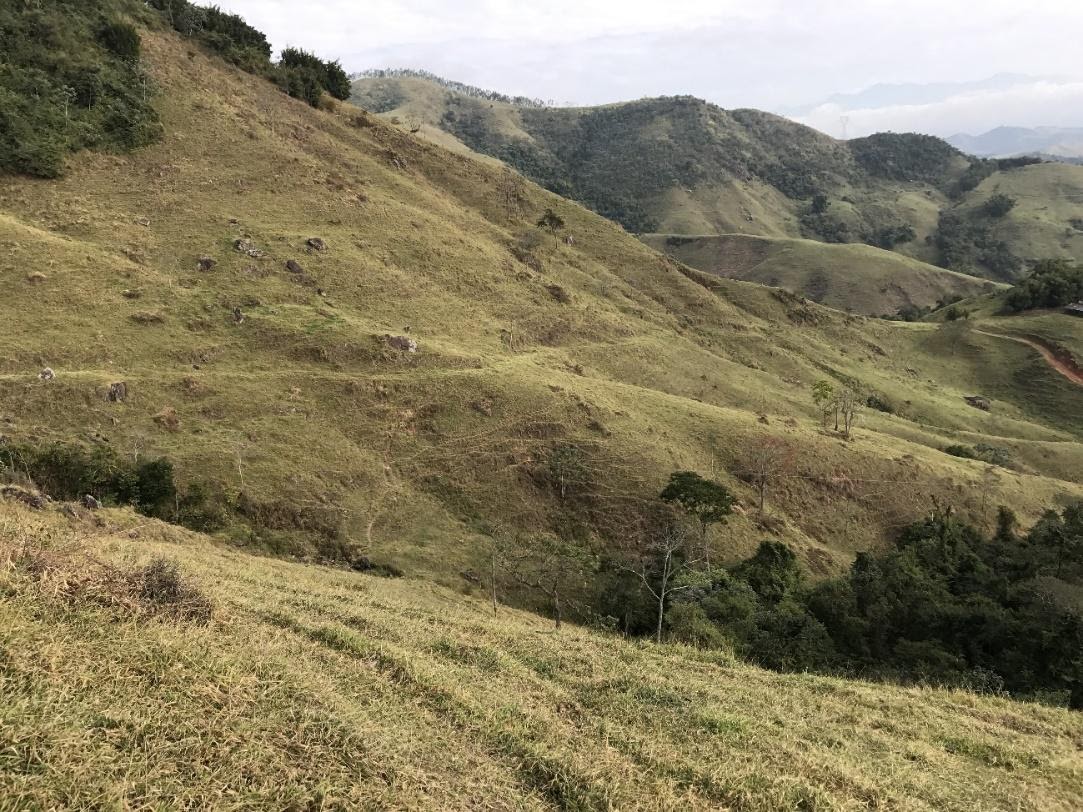 Os caminhos utilizados outrora para circulação de mercadorias também expõem lacunas na história da paisagem. Todo o escoamento do café, lenha, carvão e produtos agrícolas, anteriormente à implantação das estradas de ferro era feito por antigos caminhos que cruzavam numerosos pontos da Serra do Mar. Segundo Fraga et al. (2018), esses caminhos estavam longe de se constituírem linhas que ligavam duas localidades. Uma intrincada série de caminhos paralelos, ramais, atalhos, variantes e diferentes trajetos de subidas encheram as serranias do Sudeste brasileiro de incontáveis rotas. São frequentes seus vestígios, particularmente em áreas florestadas. É, ainda, muito comum na paisagem do planalto do Vale do Rio Paraíba a existência de trechos de estradas nas pastagens, hoje sem qualquer utilidade (Figura 6).