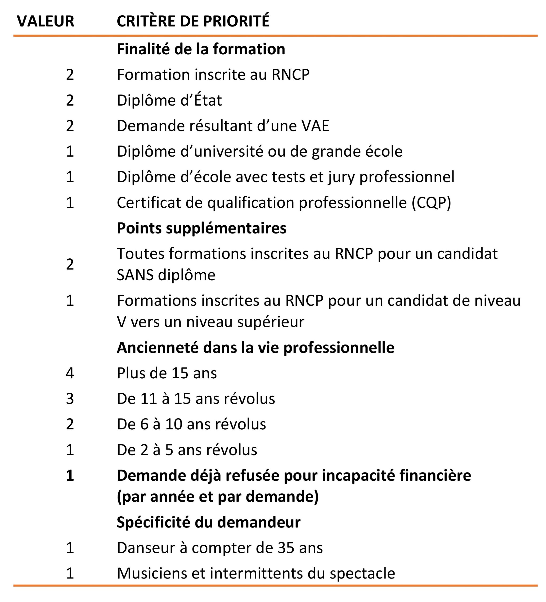 Figure 2 : exemple de système de cotation visant l’attribution d’un CIF par l’AFDAS