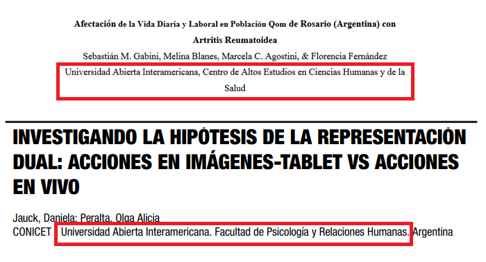 Figura 2: Ejemplos de títulos, autor/es y afiliación institucional (Fuente: Gabini et al., 2020)